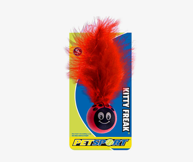 Kitty Freak is a gravity based wobbler toy with a cute feather on top. Kitty Freak has a cute lady bug face, and comes in four assorted colors: pink, red, green, and orange.