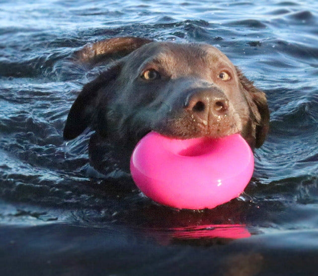 Dawg-Nut and Dawg-Nut XL are tough retrieving toys made 100% in the USA from premium FDA-approved solid rubber. Dawg-Nut is crazy-bouncing, and floats in water for fetching at the pool, lake or at the beach. Assorted bright neon colors means high visibility, so the toy won’t get lost in the grass or pool. Gentle on teeth and gums with a springy texture dogs love to bite. Dawg-Nut can be strung on a rope for added throwing distance, or to use as a super-tough tug toy. Ideal for teething puppies – Dawg-Nut can take it! Weatherproof and washable for sog-free fun.