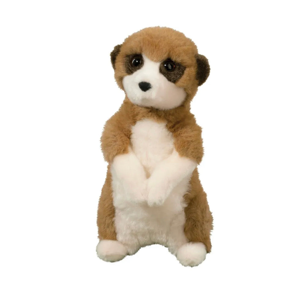 Sprightly and charming, Enzo the Meerkat stuffed animal sits up on his haunches for a better view of his surroundings! It’s his turn to help protect the colony by watching for possible danger and Enzo’s lively, dark eyes won’t miss a thing! His plush coat features tan and cream materials that are ultra cuddly and soft to the touch. Dark markings around Enzo’s eyes protect his vision from the bright African sun, while a small, flocked nose completes his curious expression. With an engaging, upright pose and a lifelike design, Enzo the plush Meerkat will be a welcome friend for fans of these energetic little critters!