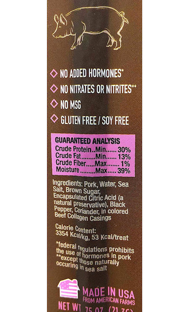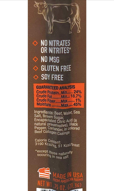 - 100% HUMAN GRADE - Share them with your dog. Made in a USDA Human Grade facility meeting 100% of all Human Grade guidelines and requirements. All proteins are 100% USDA approved meats. They are half the calories, lower cholesterol, salt, and fat that a traditional meat stick found in convenience and grocery stores for humans! Our unique recipe meets nutritional guidelines for snack foods sold in schools.