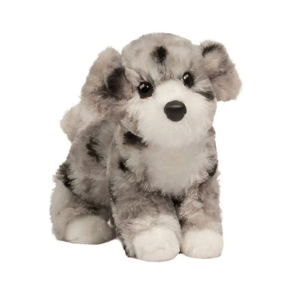 Give Miles our cuddly plush Aussie Doodle a big hug and you might just mistake him for a cloud! His playful gray coat is speckled with black mottling and features luxuriously soft plush materials for the best in cuddle time fun! White markings accent his paws and face and richly hued amber eyes give Miles a heartwarming expression. He is stuffed with soft, springy polyester fill that will have you coming back for hugs, time and again! He features a fun stand up pose that is ready for imaginative play but is soft enough for a lazy day of snuggling. Adopt Miles the sweet Aussie Doodle puppy stuffed animal today and experience the softness of a Douglas Cuddle Toy original!
