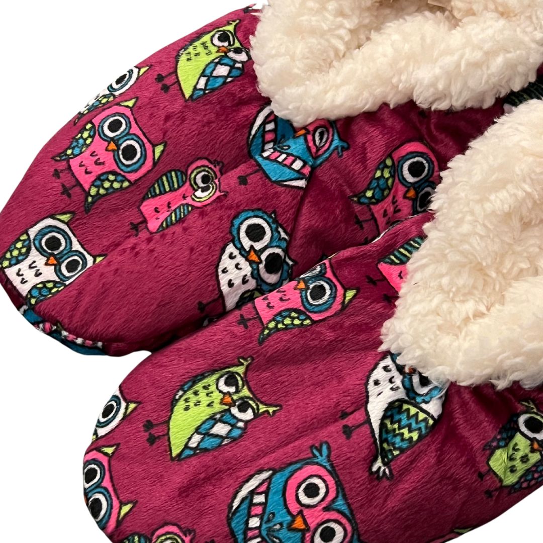 Hey you Night Owl, you gotta keep those feet feeling good in style! Our owl slippers will give you great company through the night! With a thick, fleecy lining on the inside and a soft fleece on the outside, these slippers are the very definition of "comfy!" So when it's time to tread softly, look no further than your Fuzzy Feet! (non-skid on sole.)