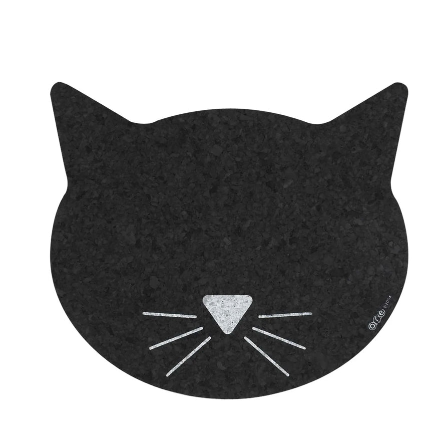 Pet Placemat | Recycled Rubber Black Cat Face