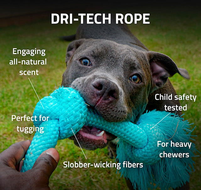Durable fiber technology resists tearing and wicks away slobber.