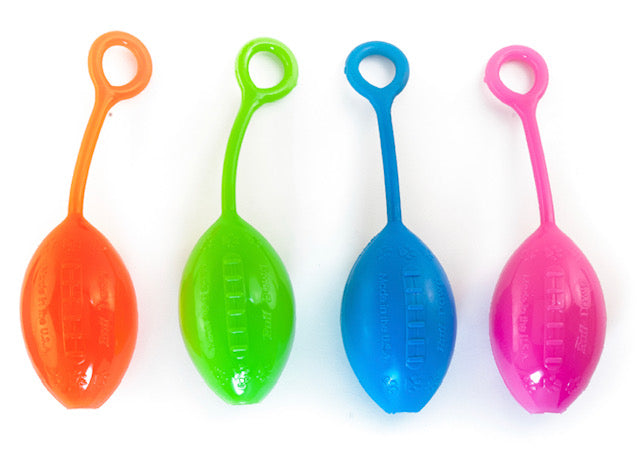 Hut – Hut! The Football Flyer Launcher toy is gummy, bouncy, treat-fillable, & irresistible! Dogs of all sizes love to fetch, retrieve & tug on this sporty toy.