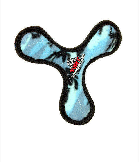 Tuffy Dog Toys Ultimate Bowmerang is tough, long-lasting, and great for beginning agility or flyball training. Squeaks to your dog's delight. A wonderful dog toy for those dogs that like to play tug or whip their toys back and forth. The soft edges are easy on your dog's gums and teeth. Squeakers: 2. Sizes: Large 10" x 10" x 2" - Small: 8" x 8" x 1".
