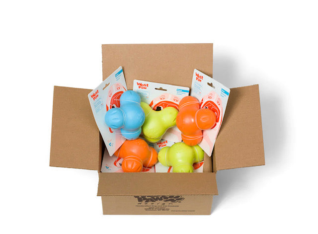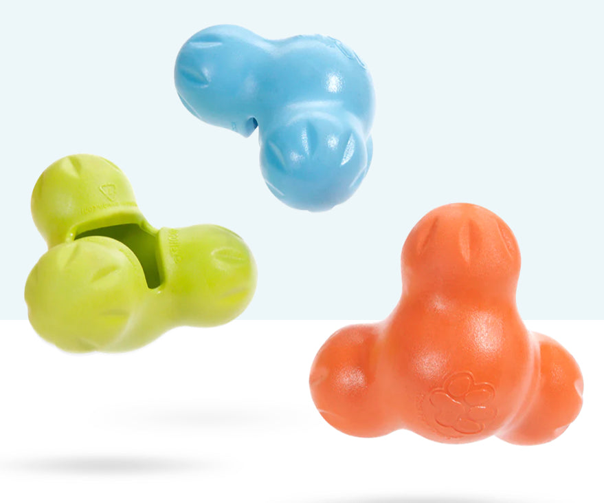 With three solid lobes, Tux is our toughest treat toy - made to stand up to some fearsome fangs. Nut butters, biscuits, and meaty bits all get gnawed free whenever a dog is near. Once treats are long gone, Tux floats, bounces, and hangs tough through serious chew sessions.